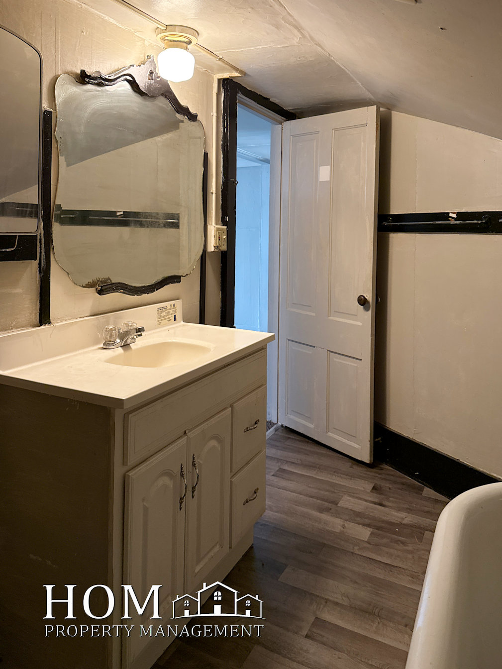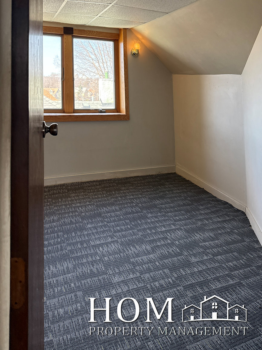 2-bedroom top floor apartment of a multiplex house. Close to Warren St. and Riverfront Dr. Laundry in building, off-street parking, natural light, claw-foot bathtub, and new kitchen and bathroom flooring.